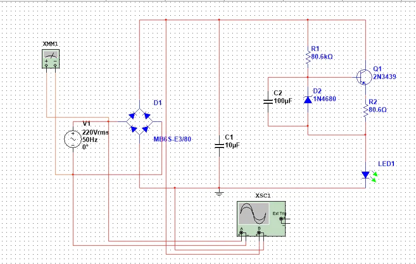 恒流電路的解析(一)在這里分析一個(gè)簡(jiǎn)單的LED恒流電路,軟件采用Multisim進(jìn)行波形采集一、元器件R1為80KΩ左右的金屬膜電阻;Q選取耐壓