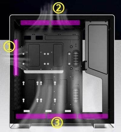 機箱散熱風道設計,機箱散熱風道圖介紹在設計風道時,主要是利用熱空氣向上運動的規律,從前往后,從下向上進行布局。通常,CPU散熱器上的風